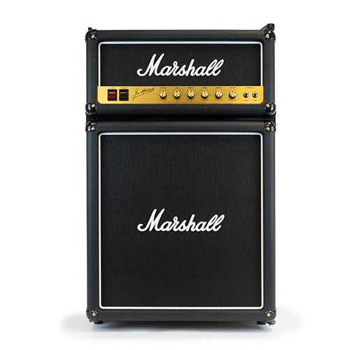 The Marshall fridge proudly features authentic Marshall Amp parts. With genuine Marshall logos, fret cloth, actual knobs, brass finished faceplate and custom branded glass shelving, the Marshall fridge is the ultimate combination of rock and refrigeration. Check out the size comparison below to find the fridge best suitable for you.